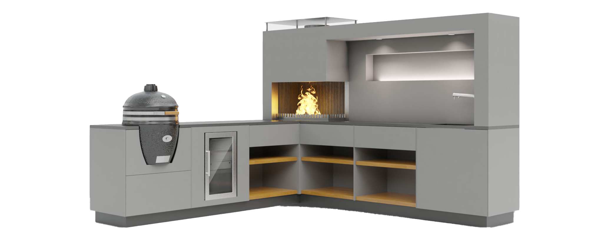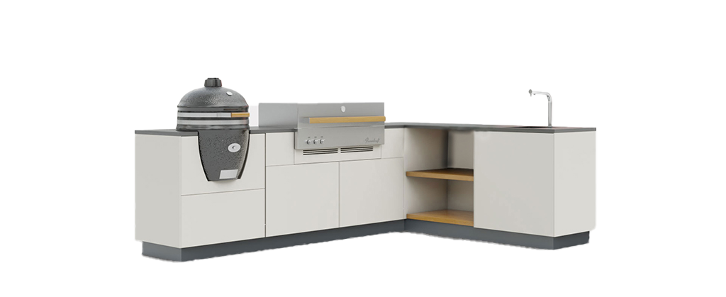 Freiluftküche delivers eye-catching designs with seamless integration. The pre-planned configurations provide functionality with desirable modules, such as ceramic and gas grills, with built-in water modules, providing an outdoor kitchen with ease.
